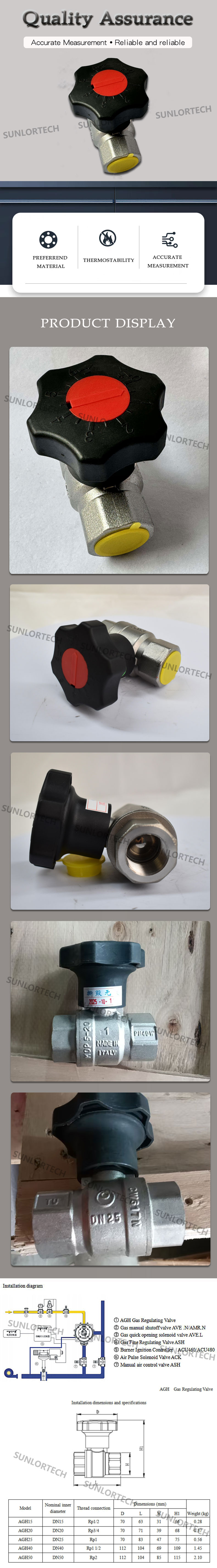 Клапан регулирующий газовый AGH 25 — это тип клапана, который можно открывать или закрывать вручную путем поворота калибровочного маховика, так что проходное отверстие на клапане соединяется или разъединяется с отверстием на корпусе клапана.