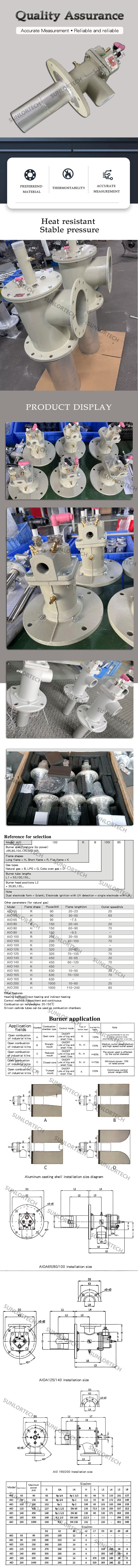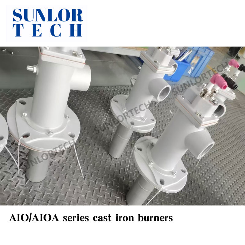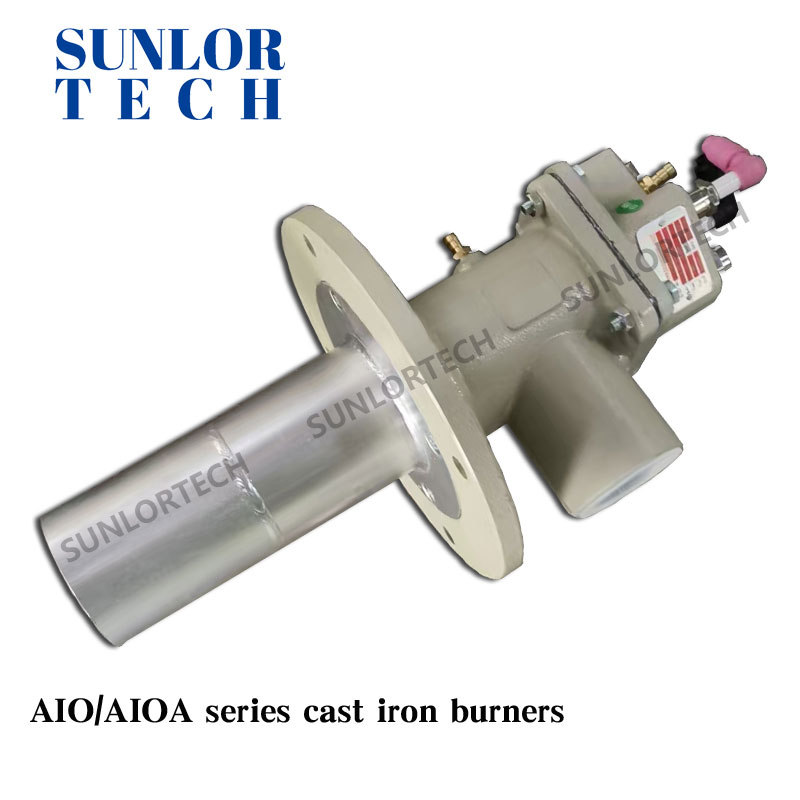 The AIO series burner, paired with burner bricks, is suitable for a variety of industrial furnaces and gas heating systems (up to 1600℃). It is ideal for the steel industry, precious metals, non-ferrous metals, and light alloy industries, as well as the glass, refractory materials, ceramics, and enamel industries. It is also suitable for ore and rock drying industries, plastic, fiber materials, and papermaking industries, as well as drying equipment and hot blast stoves. The burner can be ignited using ignition electrodes, and flame detection can be performed using ion electrodes or UV ultraviolet light. When the furnace temperature is below 750℃, it is recommended to install a flame detection system.